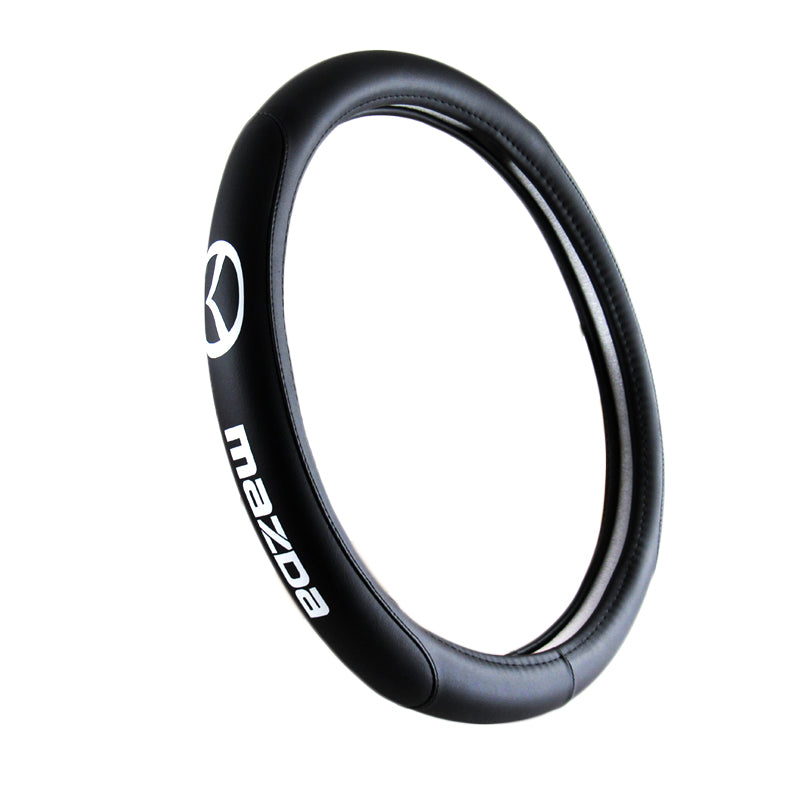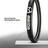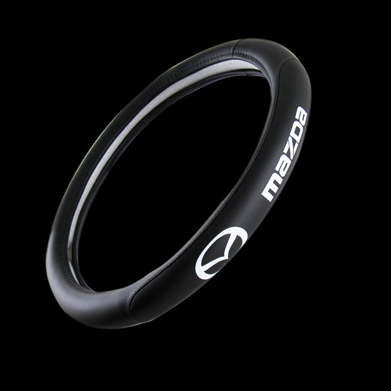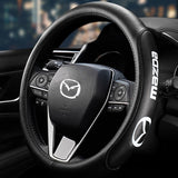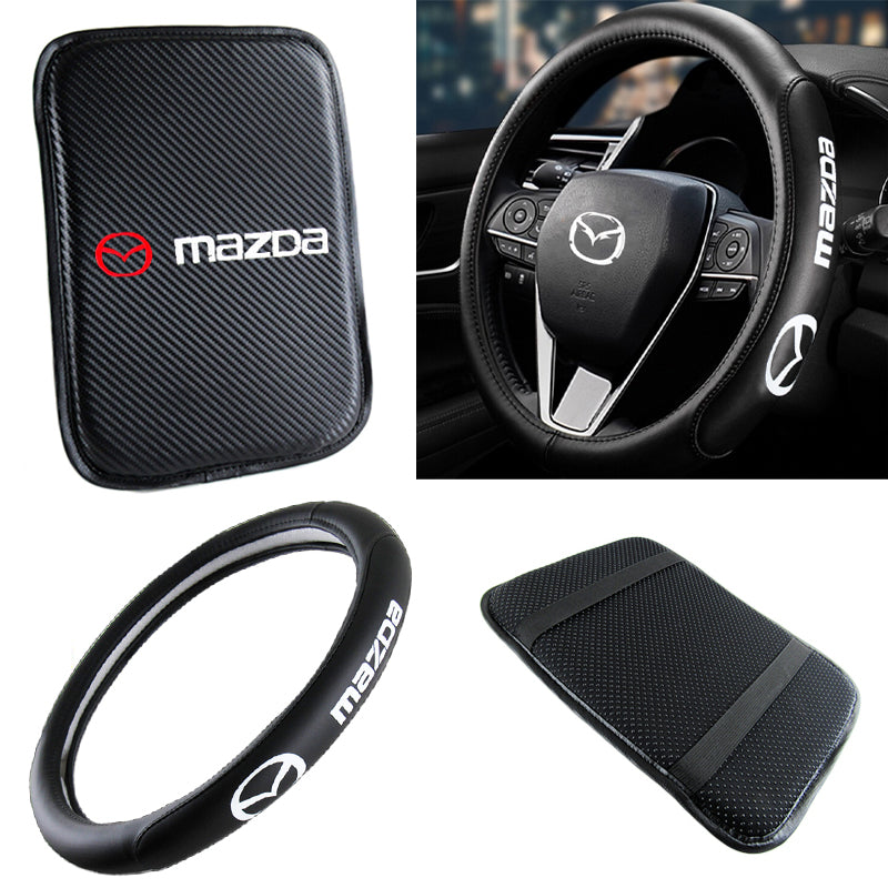 MAZDA Mazda Speed Set Black 15" Diameter Car Auto Steering Wheel Cover Quality Leather with Center Console Armrest Cushion Mat Pad Cover