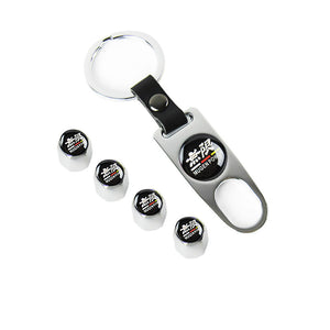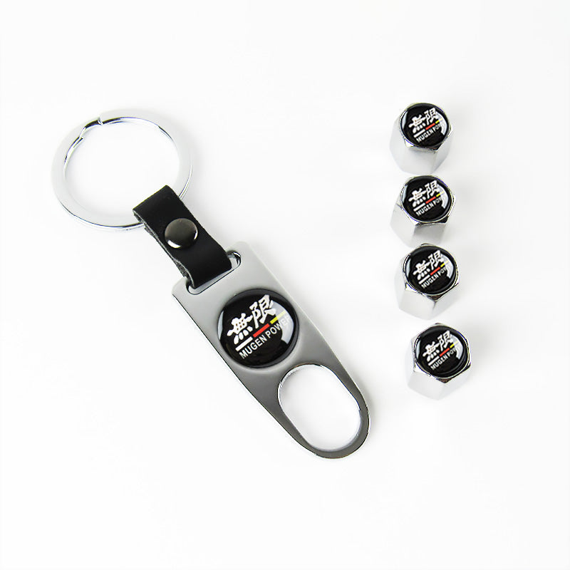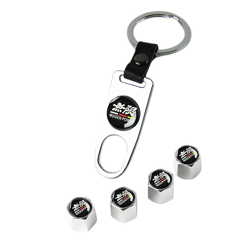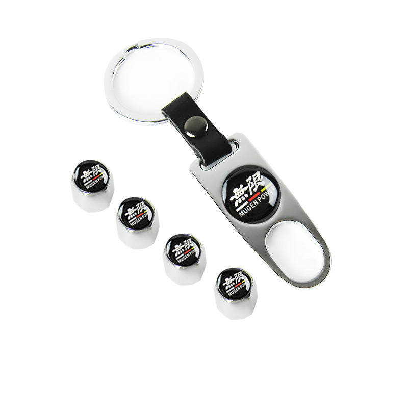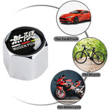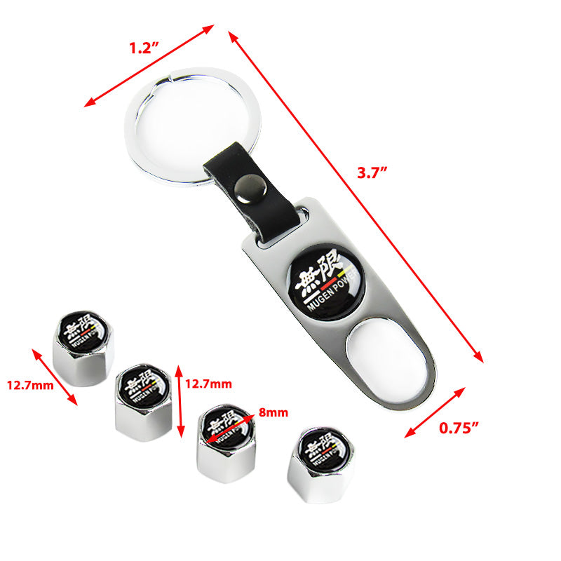 Mugen Universal Car SUV Wheel Tire Valves Dust Stem Air Caps Keychain Emblem Silver Set