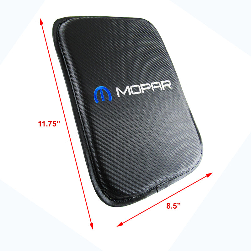 MOPAR Embroidered Armrest Cushion Center Console Cover Carbon Fiber Look Pad Mat