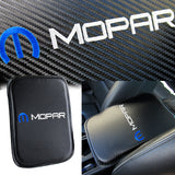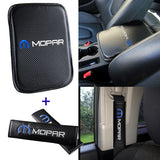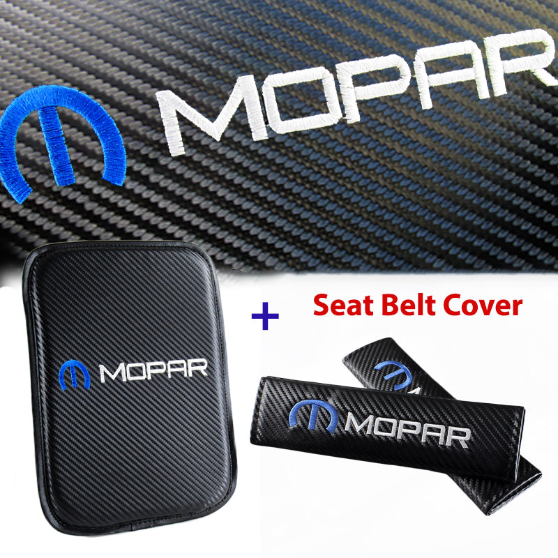 MOPAR Embroidered Armrest Cushion with Seat Belt Cover Set Carbon Fiber Look Center Console Cover Pad Mat