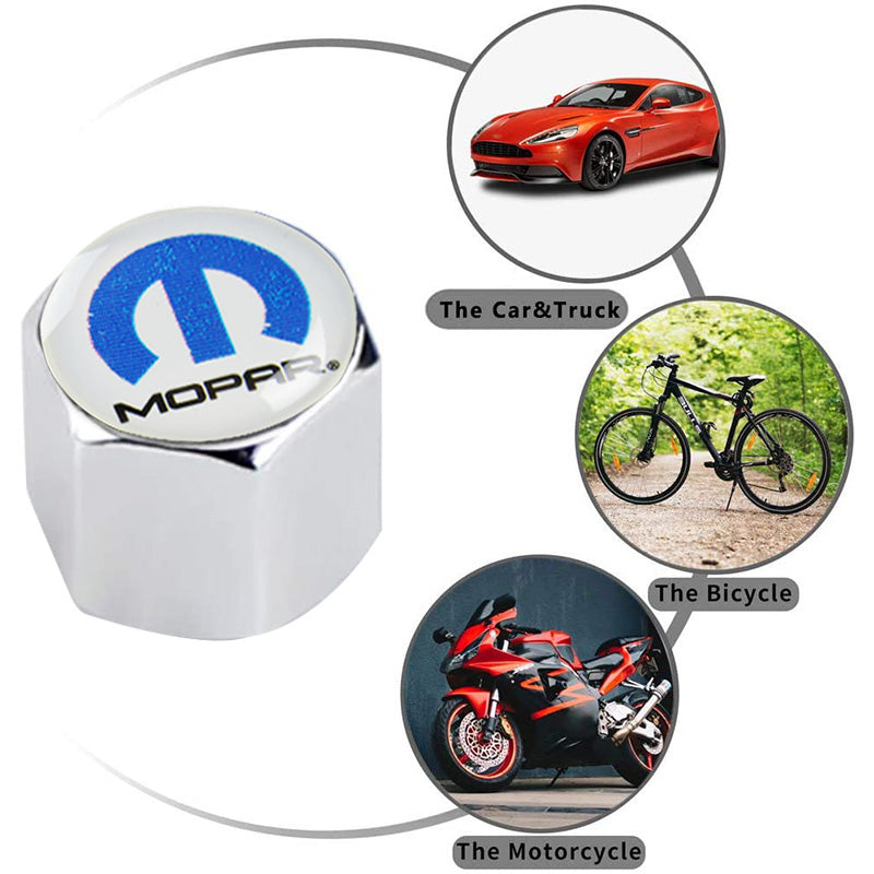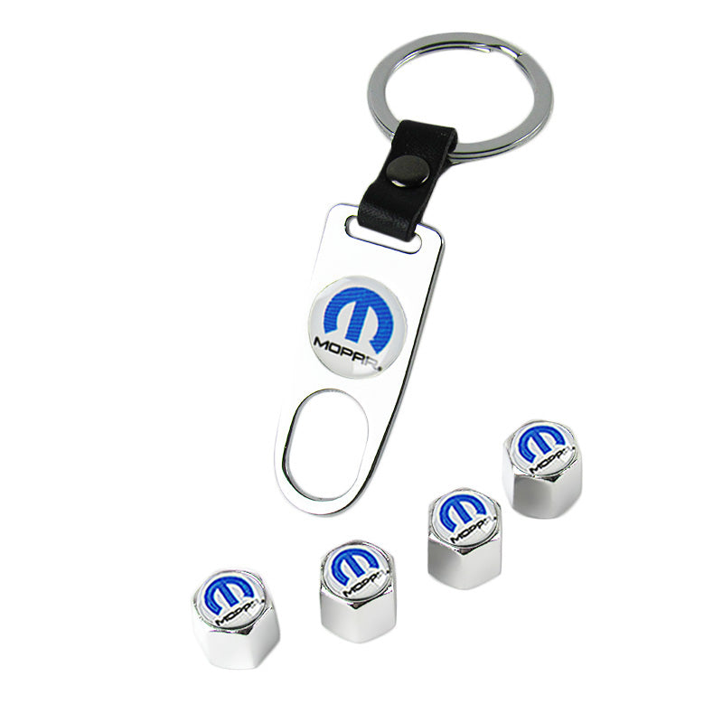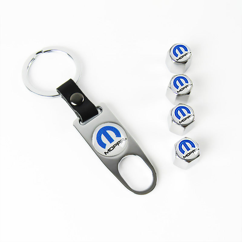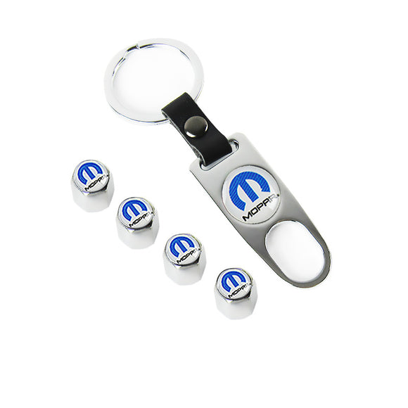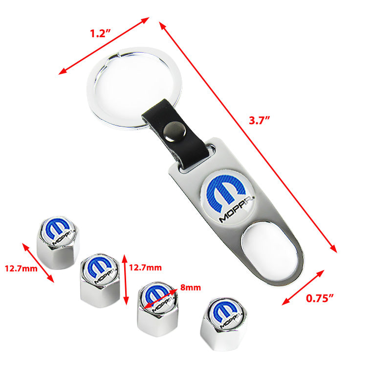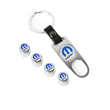 Mopar "M" Logo Universal Silver Car SUV Wheel Tire Valves Dust Stem Air Caps Keychain Emblem Set