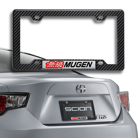 Mugen Carbon Fiber Look ABS License Plate Frame with Emblem