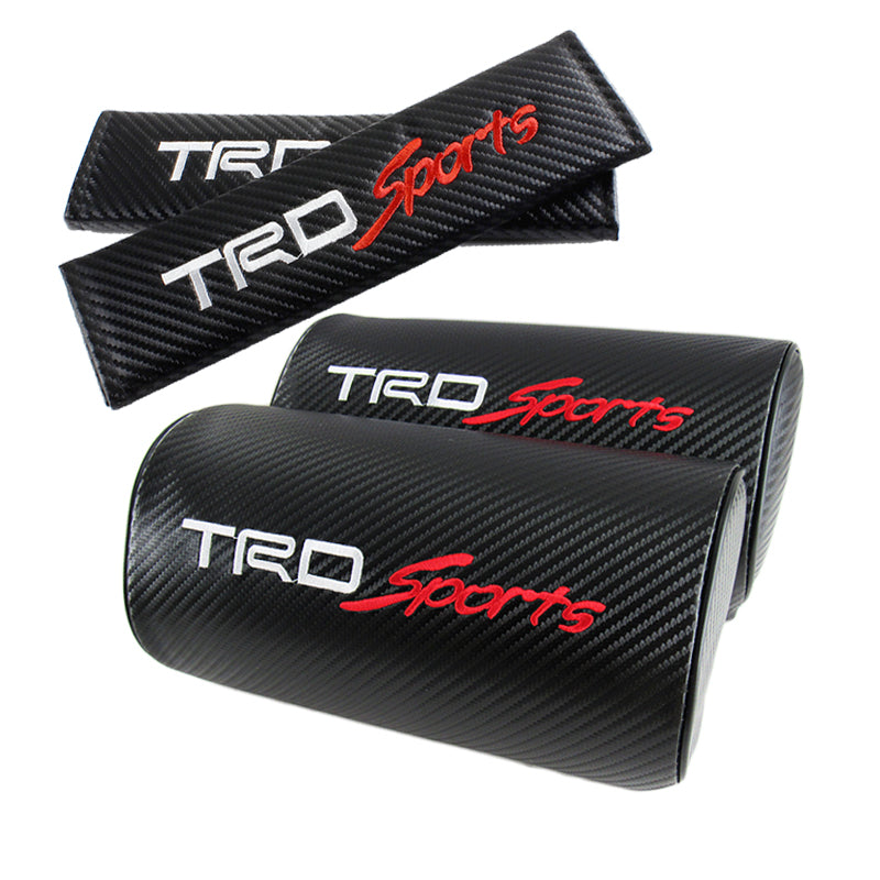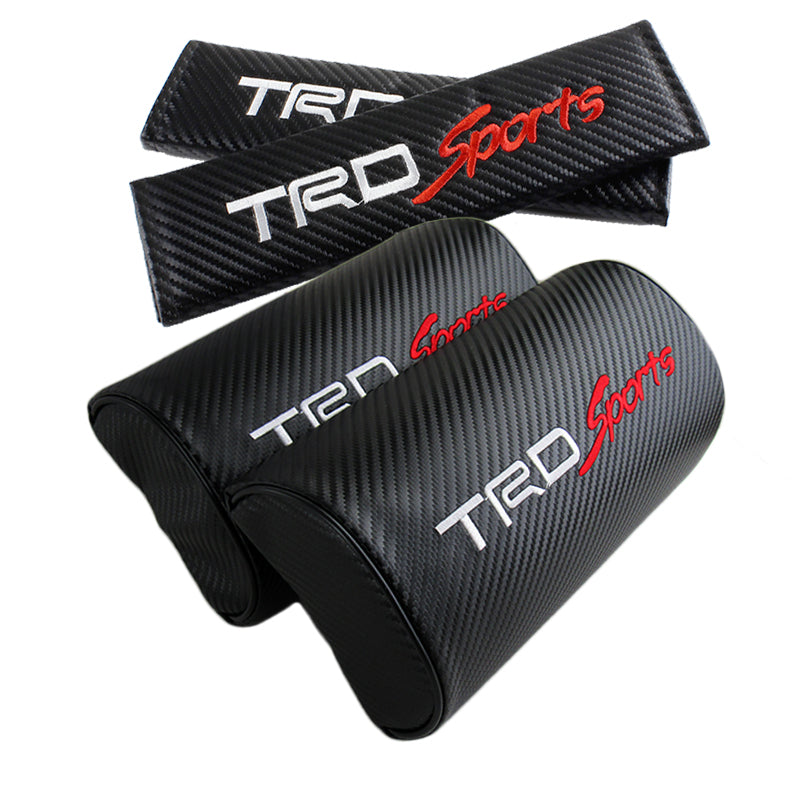 New 2pcs Set For JDM TRD Racing Car neck rest pillow & 2pcs Car seat belt cover