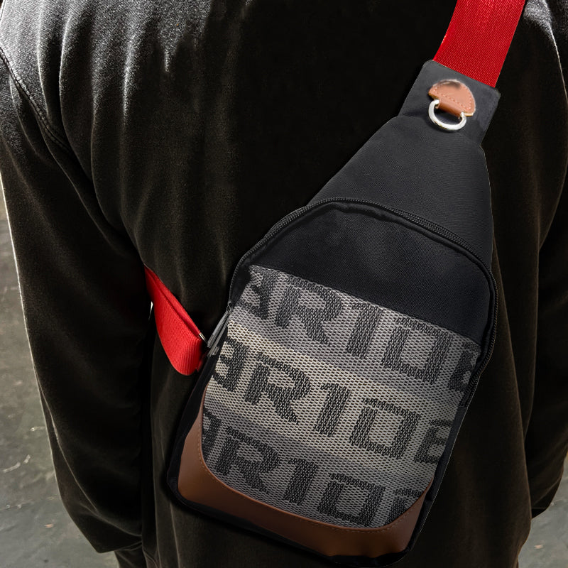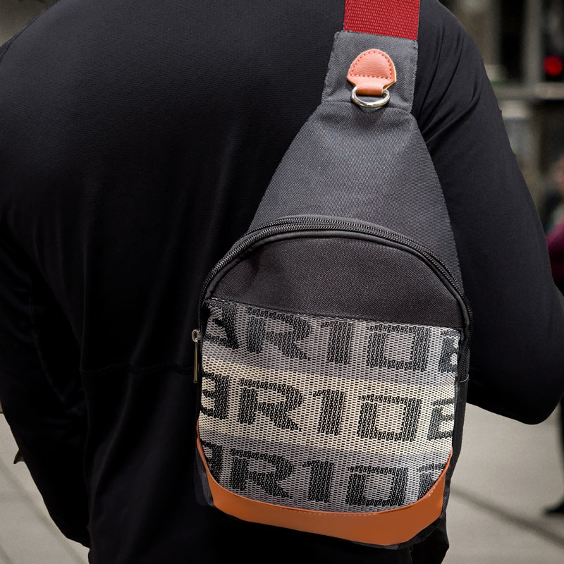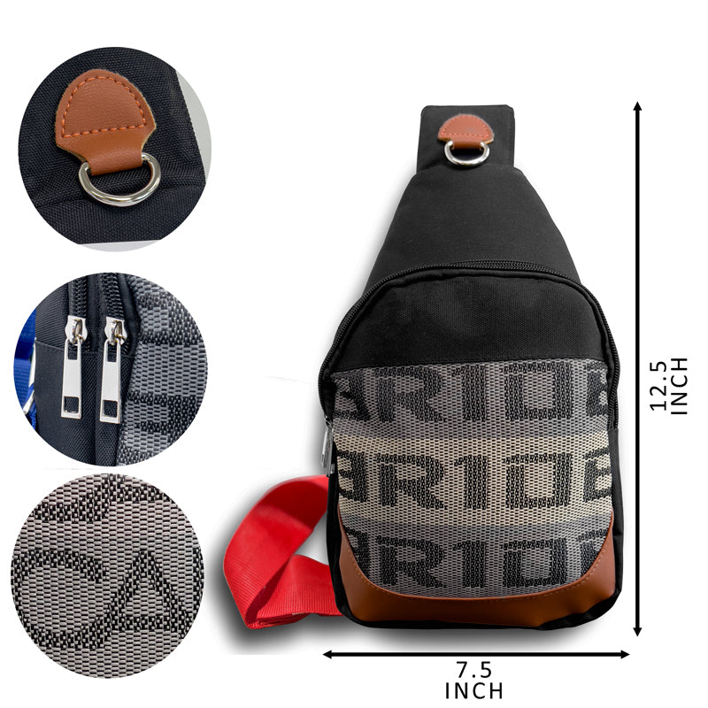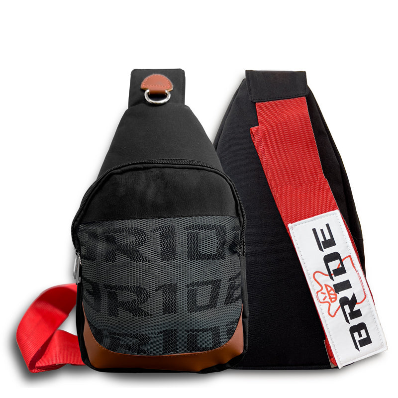 NEW BRIDE RACING BACKPACK BLACK GRADATION CROSSBODY SHOULDER BAG W/ RED STRAPS