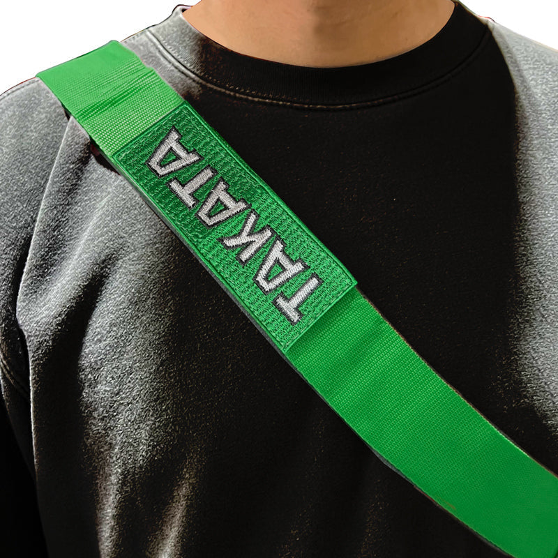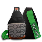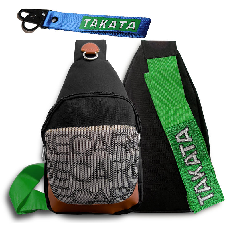 NEW JDM RECARO SET GRADATION BACKPACK CROSSBODY SHOULDER BAG W/ GREEN TAKATA STRAPS BLUE KEYCHAIN