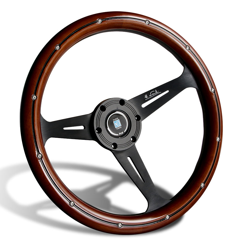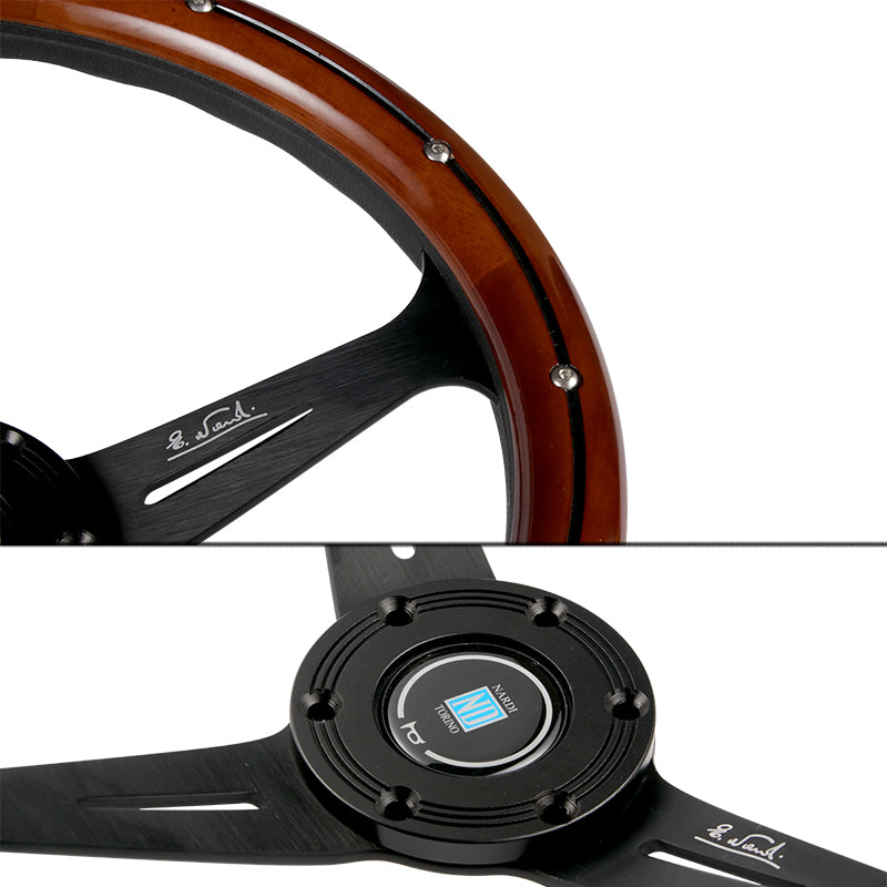 NEW NARDI CLASSIC 350MM STEERING WHEEL MAHOGANY WOOD with BLACK SPOKE U Style