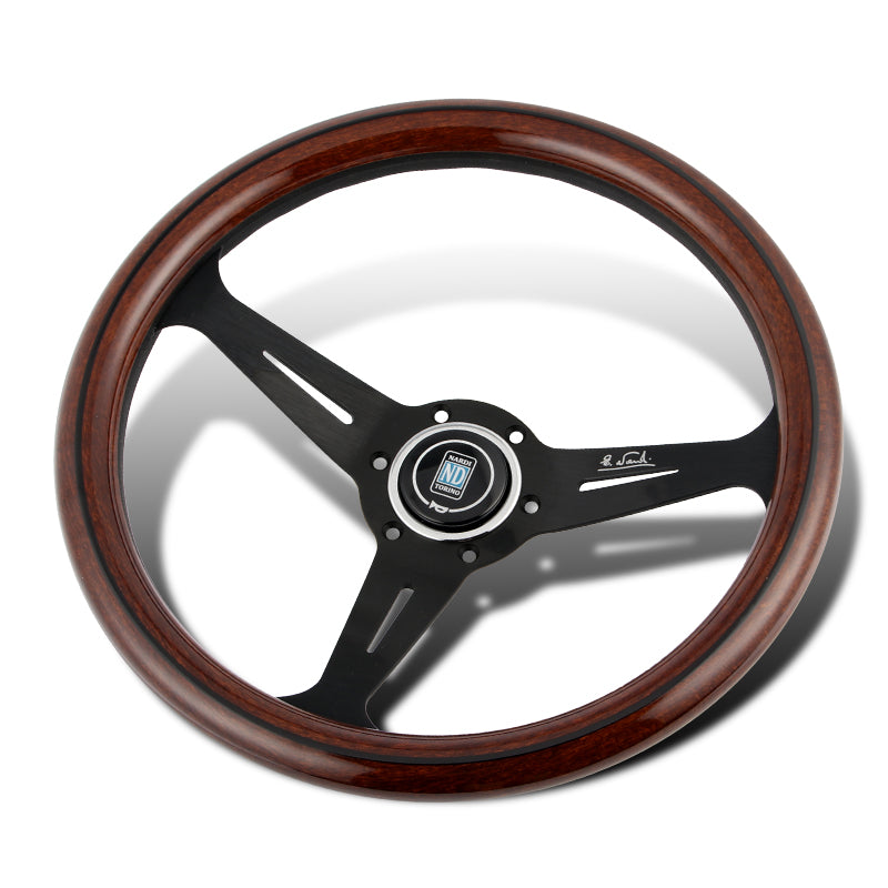 NEW NARDI CLASSIC 350MM STEERING WHEEL MAHOGANY WOOD with BLACK SPOKE Z Style