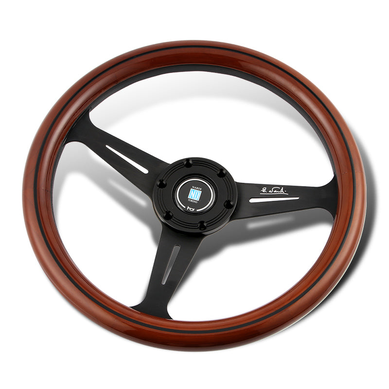 NEW NARDI CLASSIC 350MM STEERING WHEEL MAHOGANY WOOD with BLACK SPOKE E Style