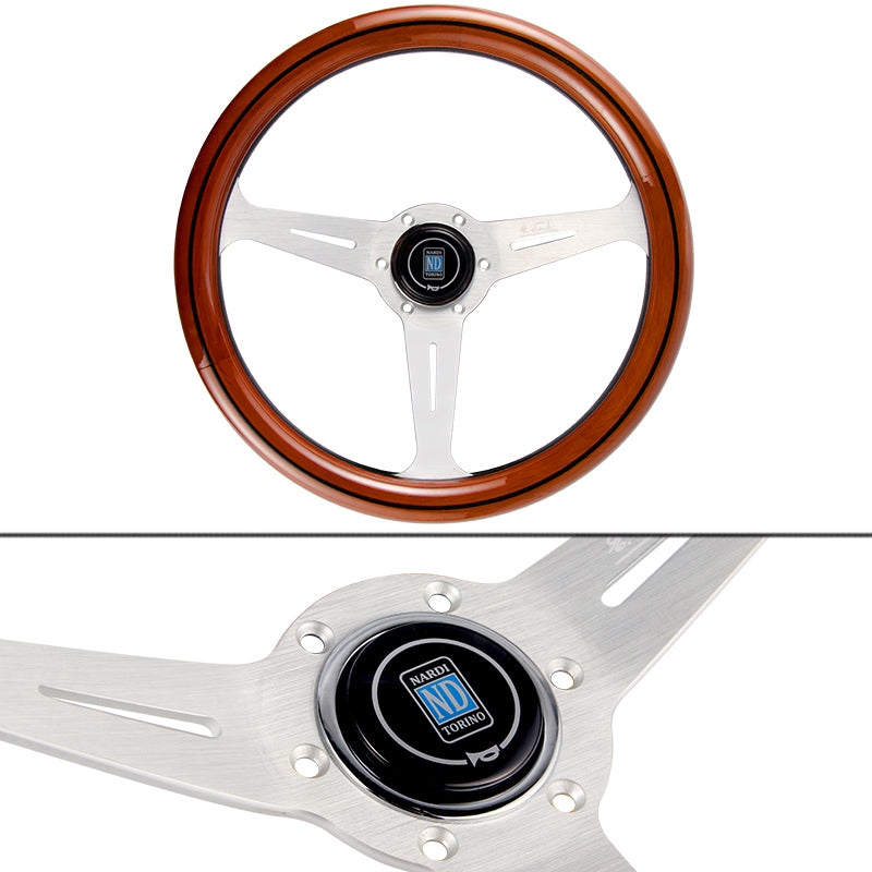 NEW NARDI CLASSIC 350MM STEERING WHEEL MAHOGANY WOOD with POLISHED SPOKE P Style