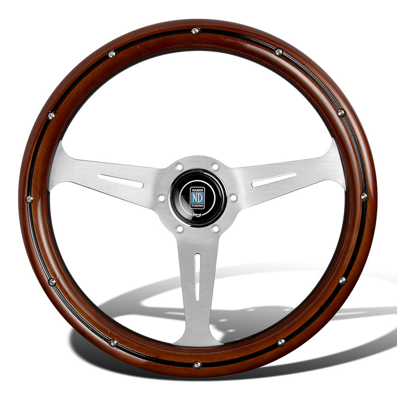 NEW NARDI CLASSIC 350MM STEERING WHEEL MAHOGANY WOOD with POLISHED SPOKE T Style
