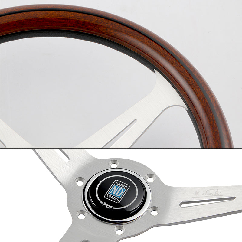 NEW NARDI CLASSIC 350MM STEERING WHEEL MAHOGANY WOOD with POLISHED SPOKE X Style