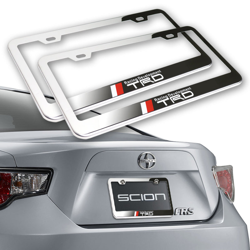 New TRD 2 pcs Stainless Steel License Plate Frame with Caps Bolt Screw Set