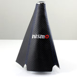 Nissan Nismo Blue Stitched Black Carbon Fiber Look Shifter Boot Cover