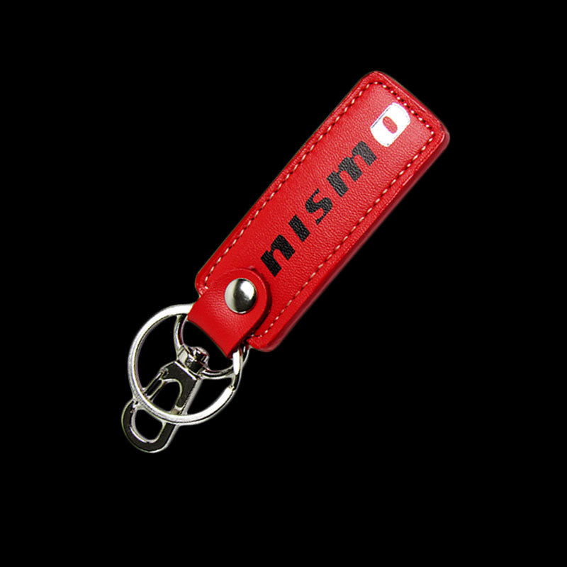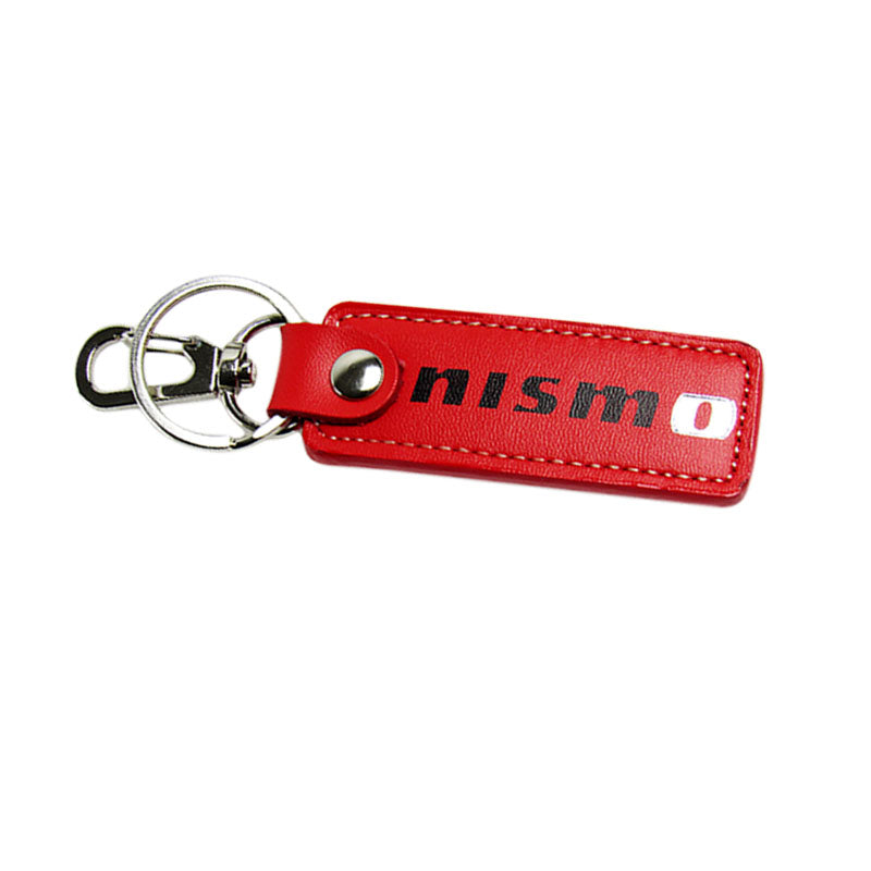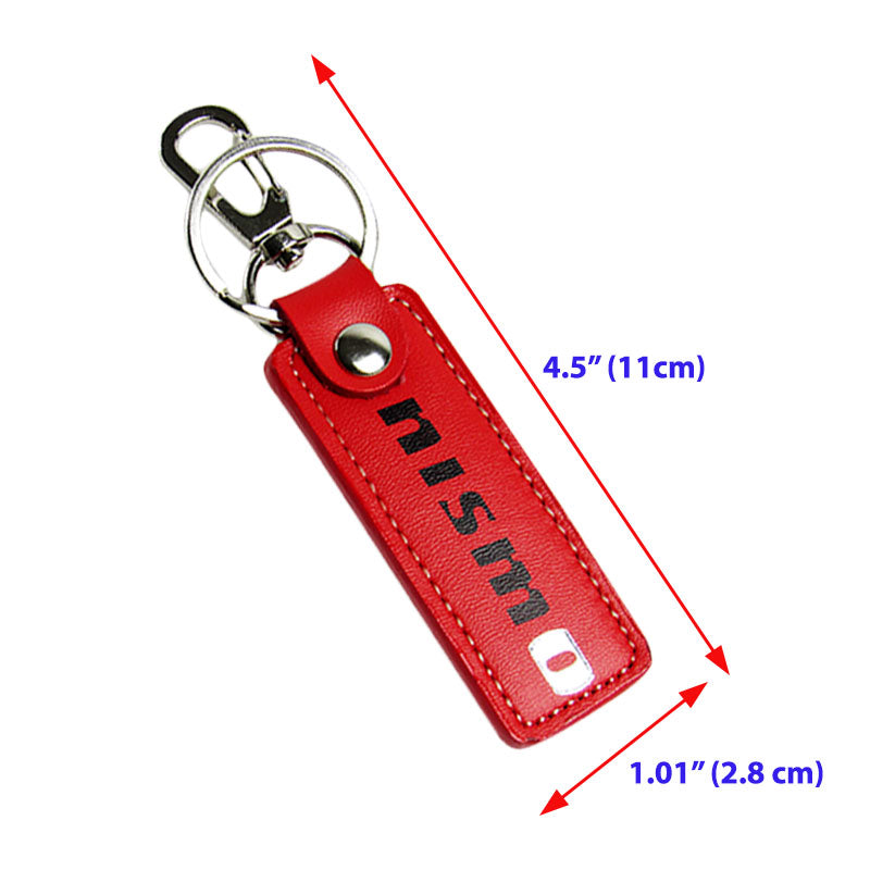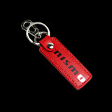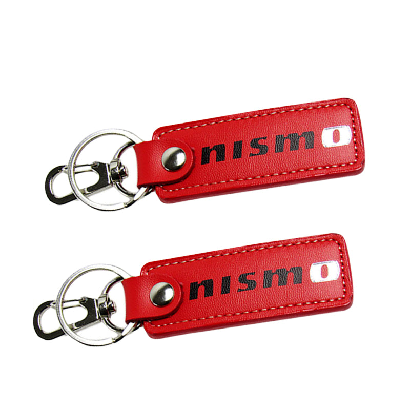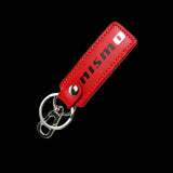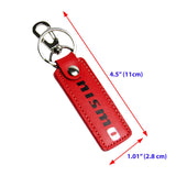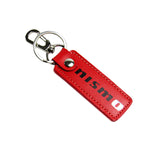 NISSAN NISMO 2 pc Red Leather Rectangle Key Fob Keyring Keychain Tag Lanyard Holder Clip New