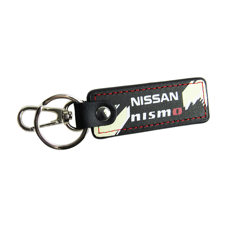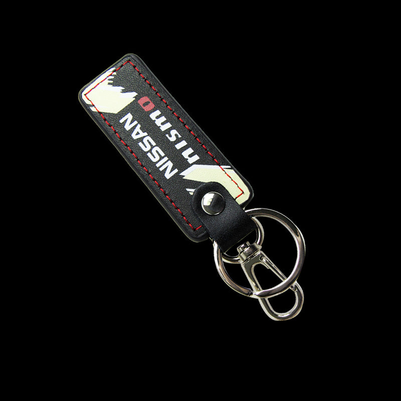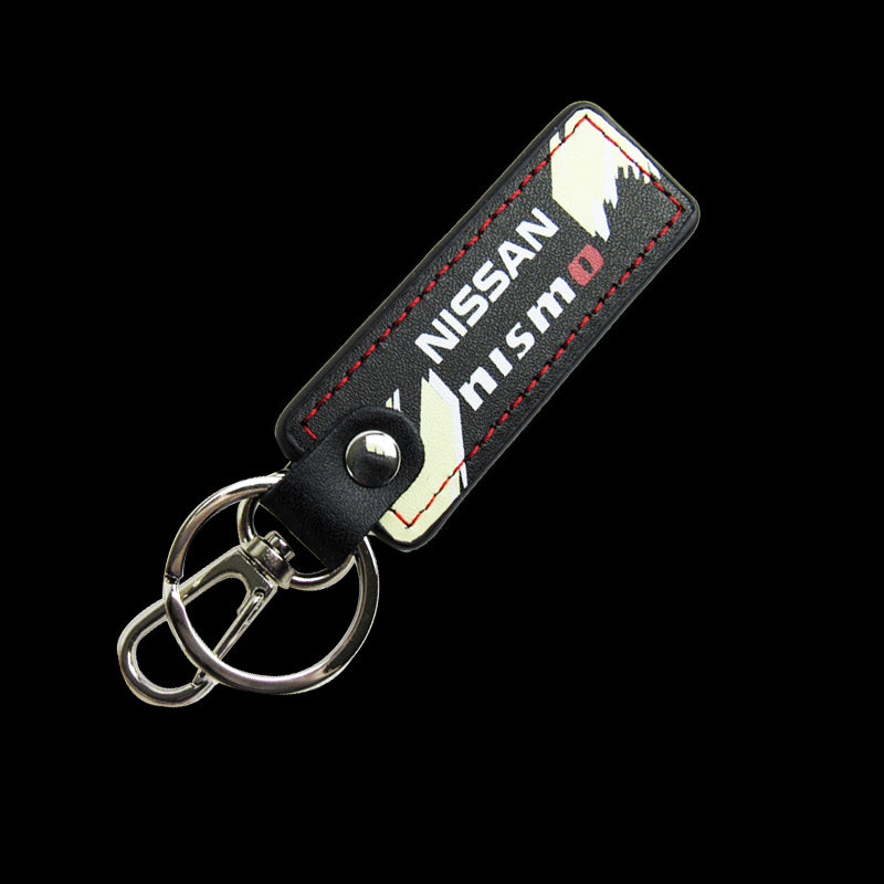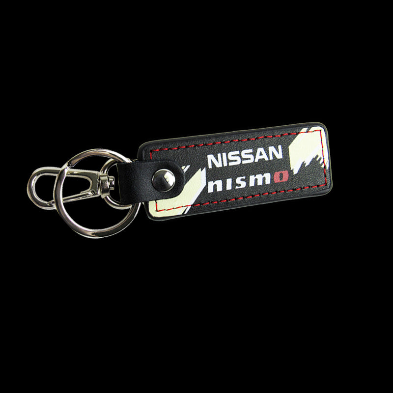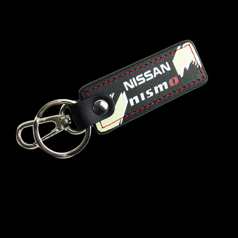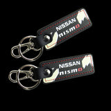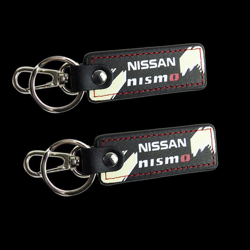 NISSAN NISMO JDM 2 pc Black Leather Rectangle Key Fob Keyring Keychain Tag Lanyard Holder Clip New