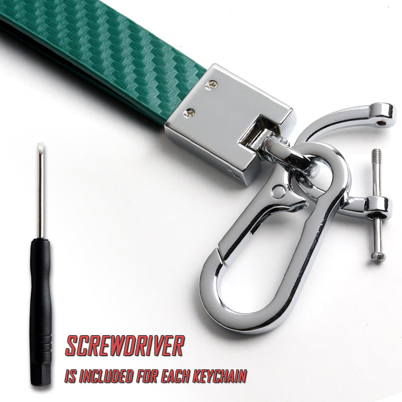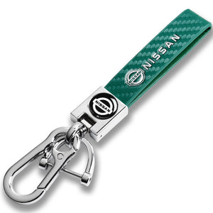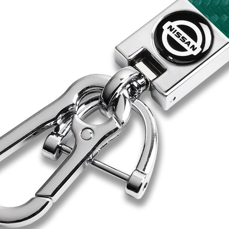 NISSAN NISMO Universal Chrome 3D Logo Carbon Fiber Look Green Leather Metal Gift Decor Quick Release Lanyard Keychain