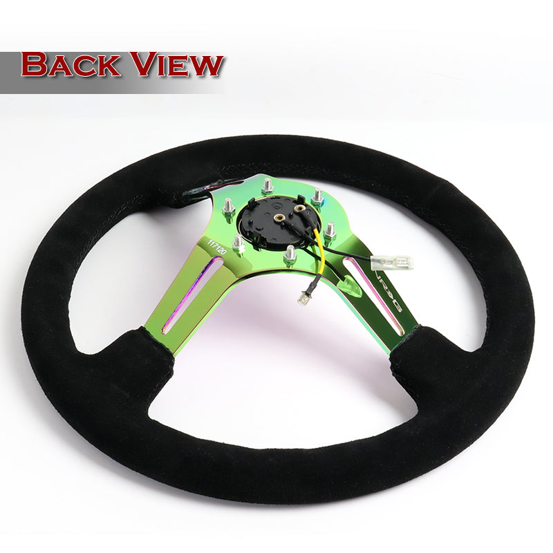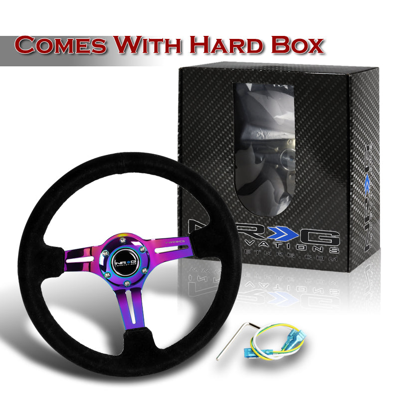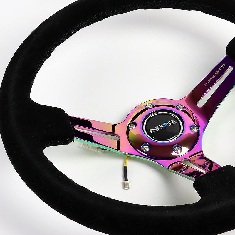 NRG 13.75" 350mm 6-Bolt Hole Black Suede Grip With Aluminum Finished 3-Spoke 3 Inch Deep Dish Steering Wheel RST-018S-MCBS -Neo Chrome Spoke