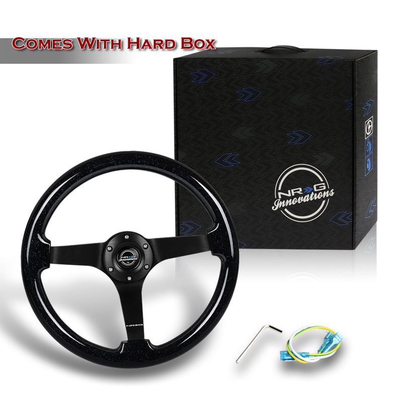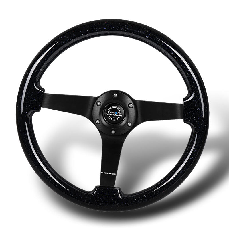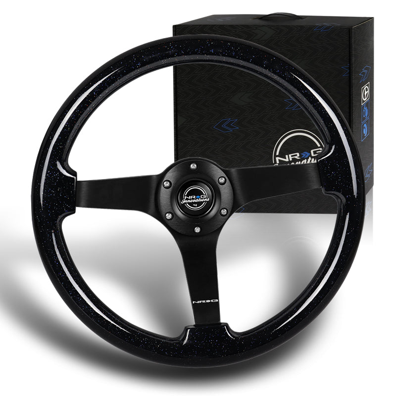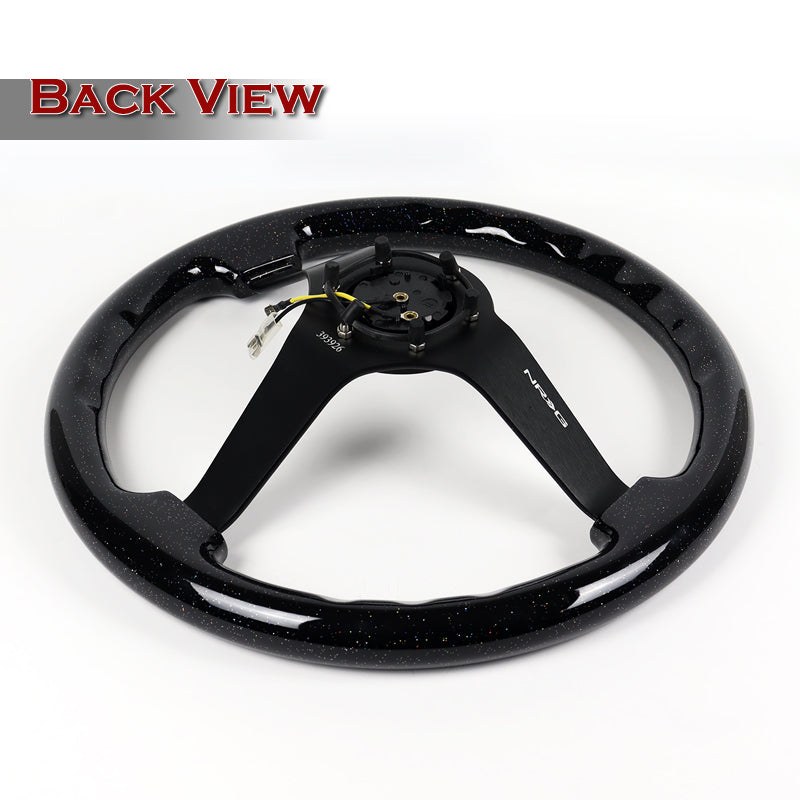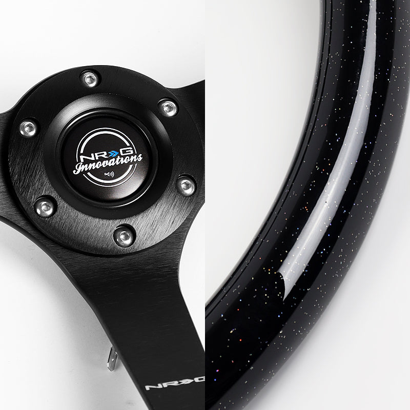 NRG 14" 350mm 6-Bolt Hole Black Sparkle Wood Grip With Aluminum Finished 3-Spoke 3 Inch Deep Dish Steering Wheel RST-036BSB-BK -Black Spoke