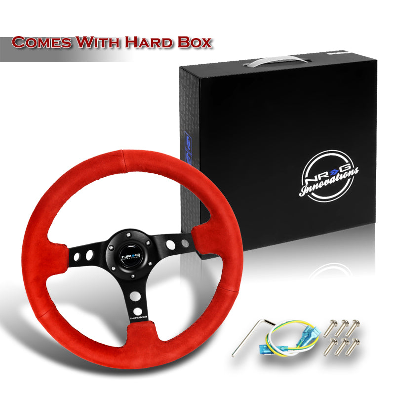 NRG 14" 350mm 6-Bolt Hole Red Suede Grip With Aluminum Finished 3-Spoke 3.5 Inches Deep Dish Racing Steering Wheel RST-006S-RR -Black Center