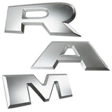 Silver Set of RAM 3D Letter Logo Car Tailgate Emblem Badge Sticker for 1500 Rear Trunk 2015 2016 2017 2018