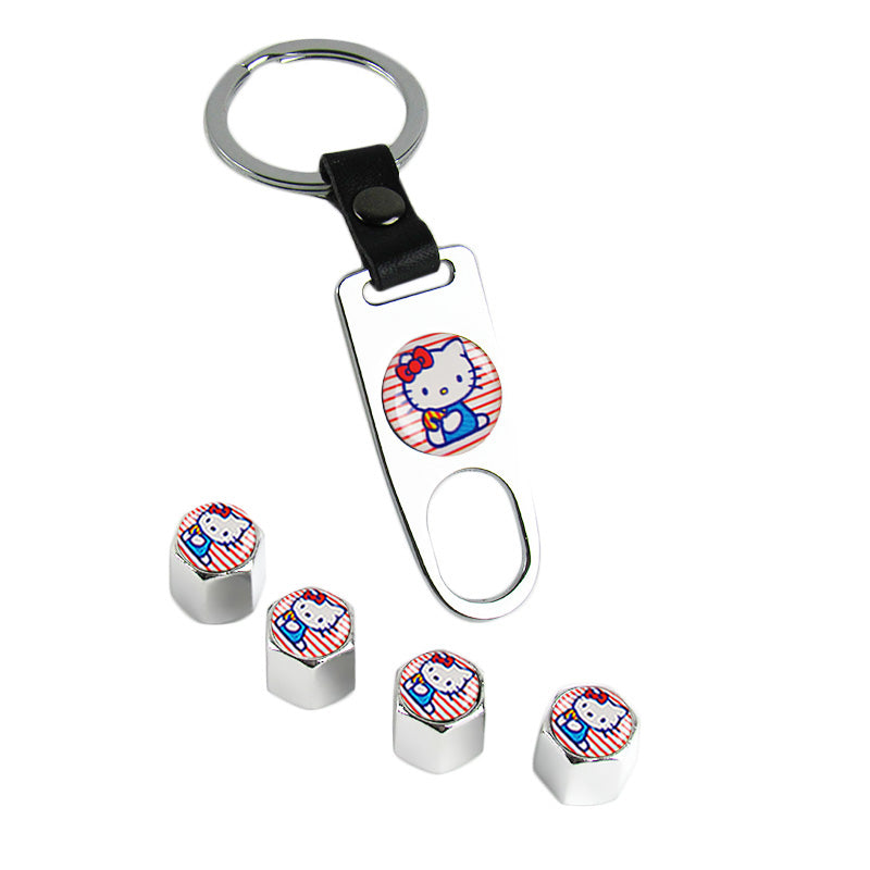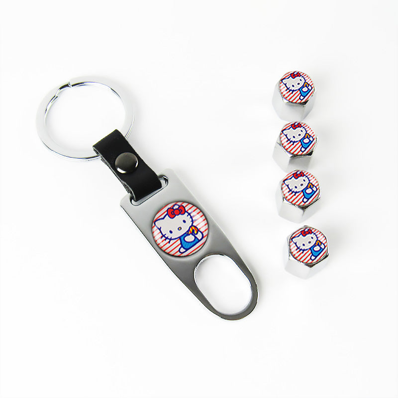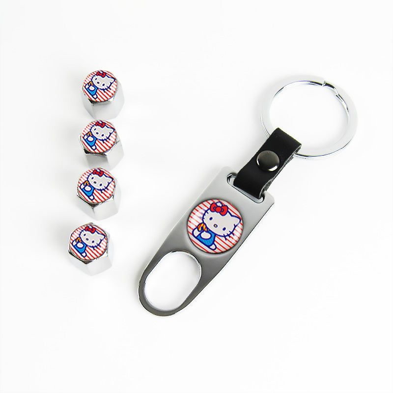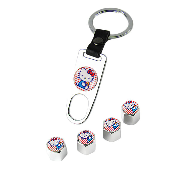 Pink Hello Kitty Car Wheel Tire Valves Dust Stem Air Caps Keychain Emblem KEY FOB Silver Set - US SELLER