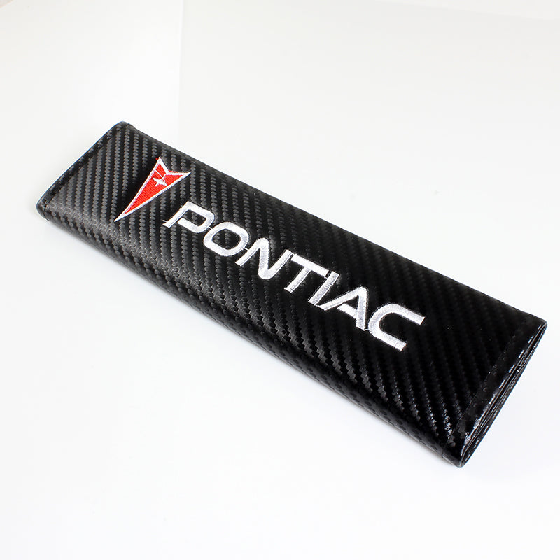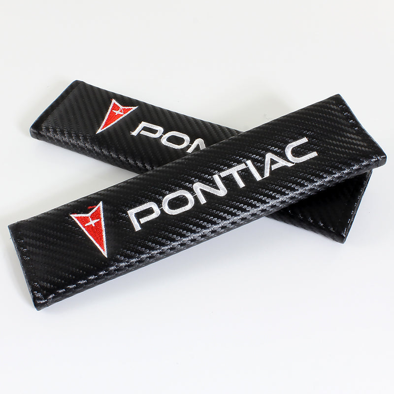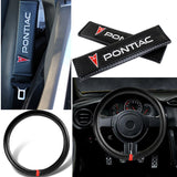 PONTIAC Set of Car 15" Steering Wheel Cover Carbon Fiber Style Leather with Seat Belt Covers