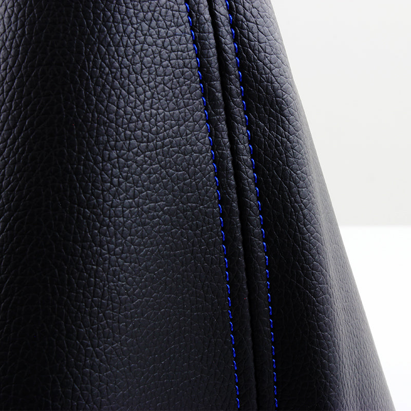 • Color: Black PVC Leather with 4 Blue Seams / Stitches