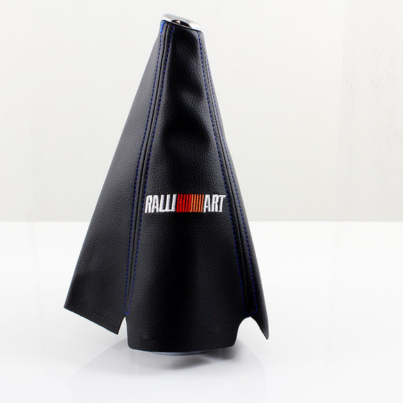 Mitsubishi Ralliart Blue Stitched Black PVC Leather Shifter Boot Cover