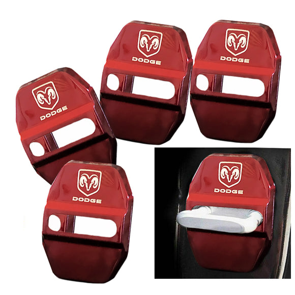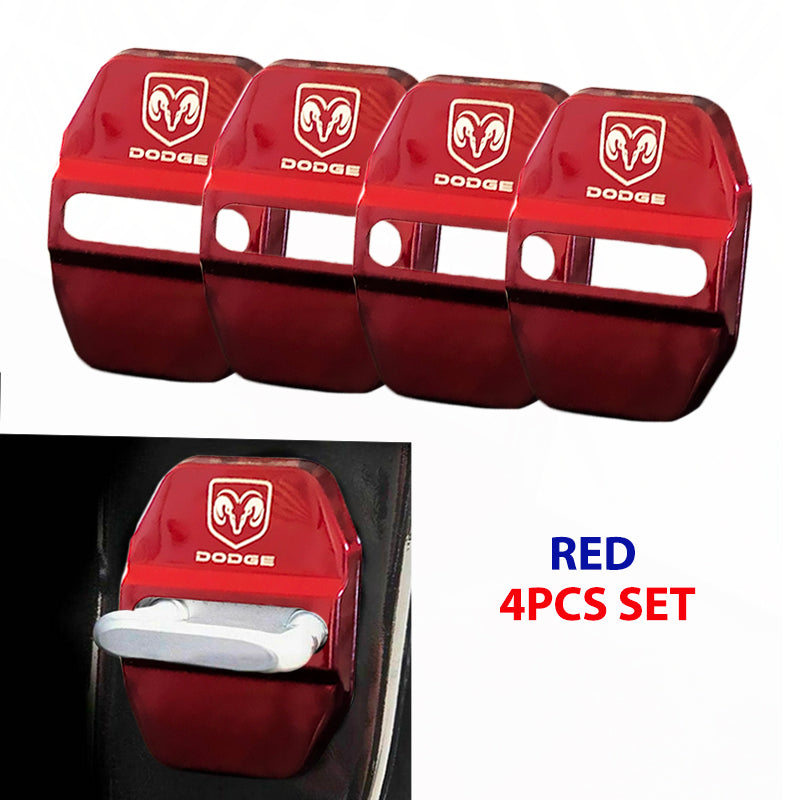 Red DODGE Stainless Steel Door Lock Door Striker Buckle Lock Protective Cover Set - 4 pcs