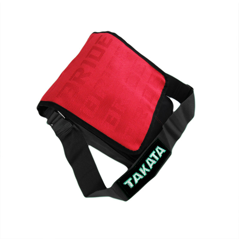 Red GRADATION CROSSBODY SHOULDER BRIDE RACING BAG W/ TAKATA BLACK HARNESS STRAP