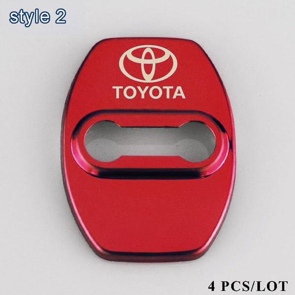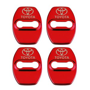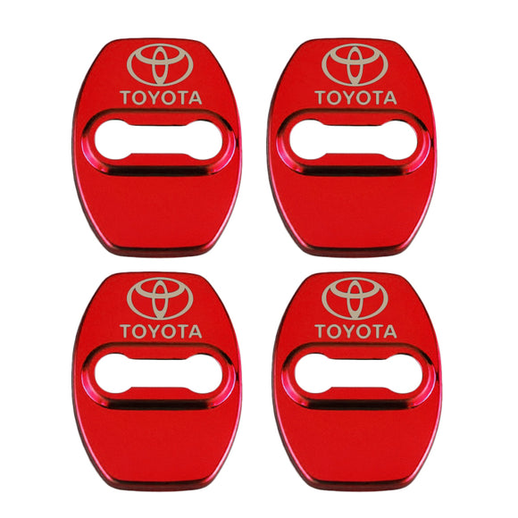 Red TOYOTA Stainless Steel Door Lock Door Striker Cover Set - 4 pcs
