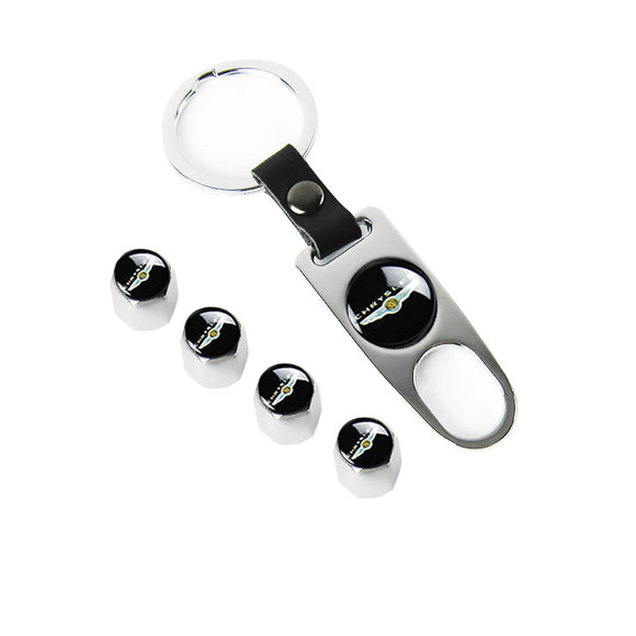 Silver CHRYSLER Car Wheel Tire Valves Dust Stem Air Caps Keychain Emblem KEY FOB Set - US SELLER