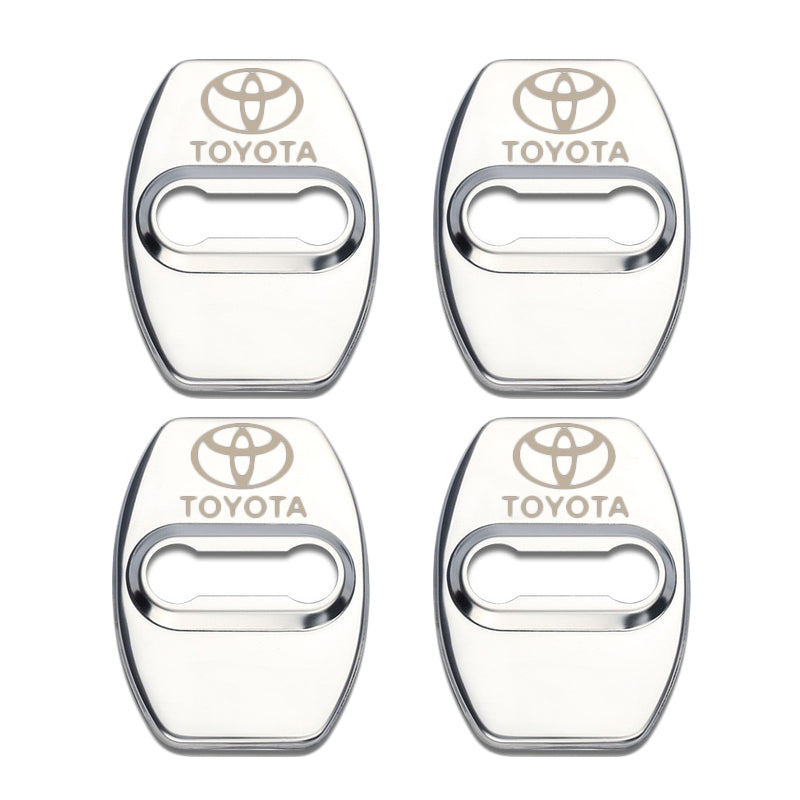 Silver TOYOTA Stainless Steel Door Lock Door Striker Cover Set - 4 pcs