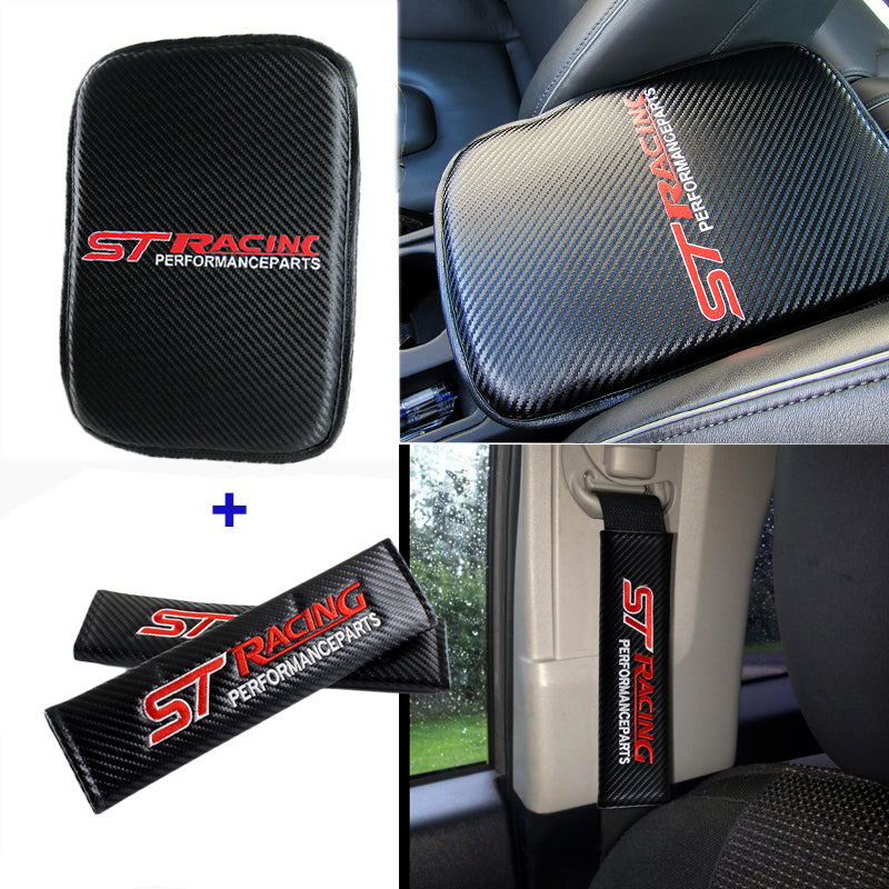 ST Racing Set of Carbon Fiber Look Armrest Cushion & Seat Belt Cover