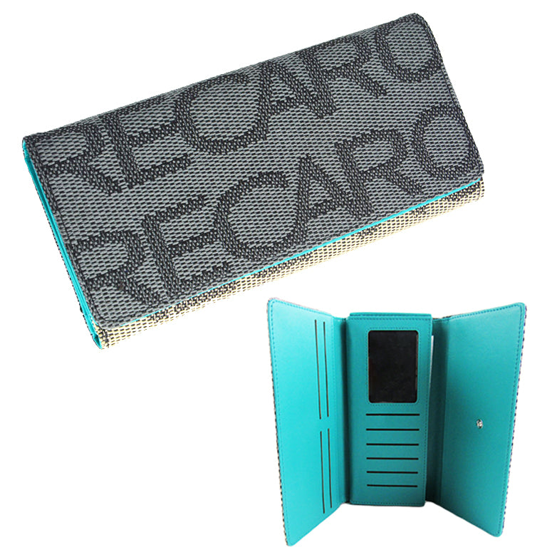 - RECARO Racing Women's Ladies Wallet Clutch Trifold Fabric Leather Gradation -TEAL