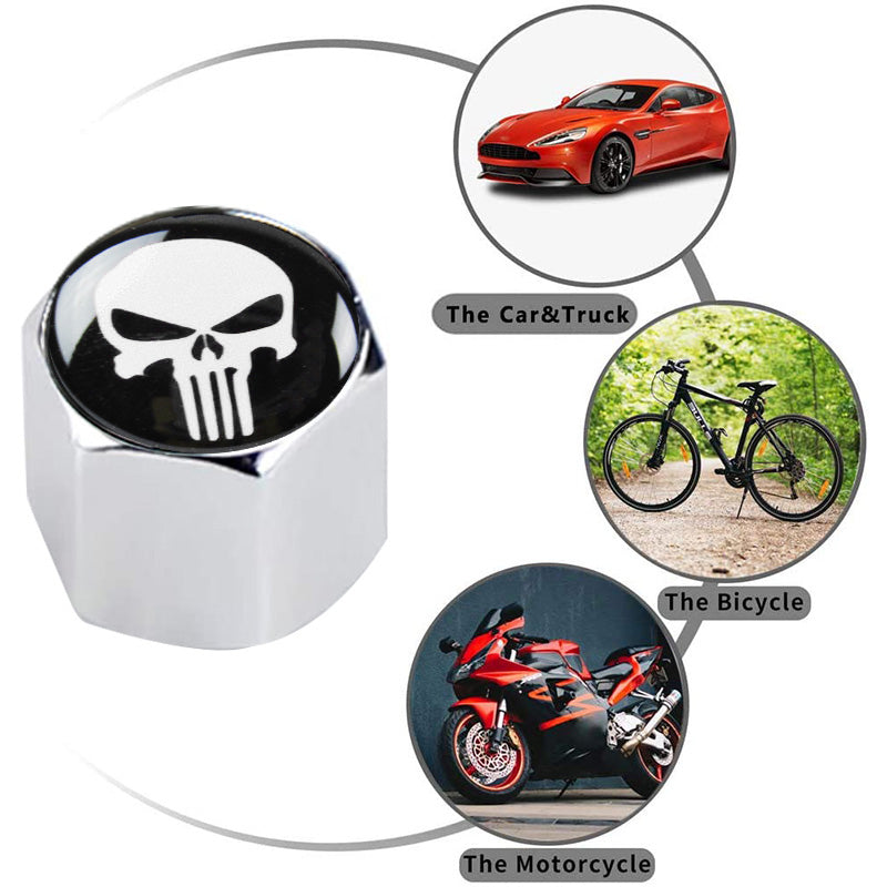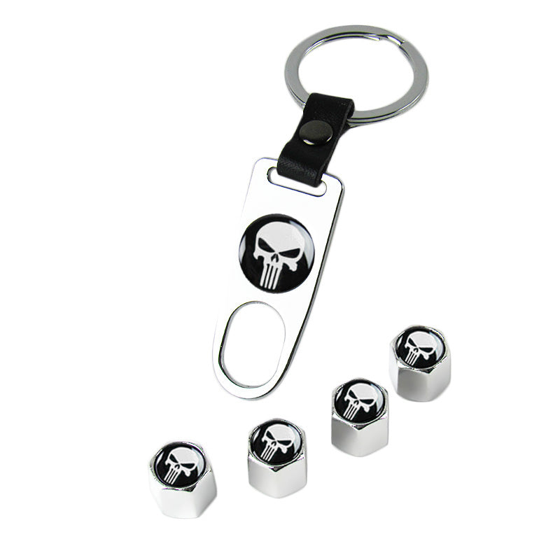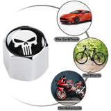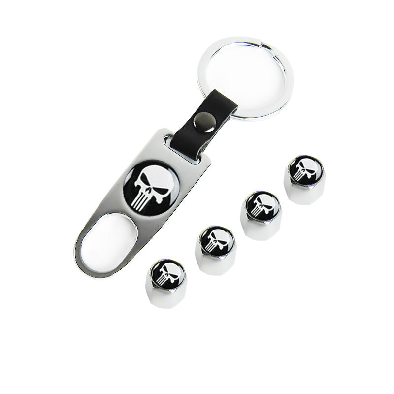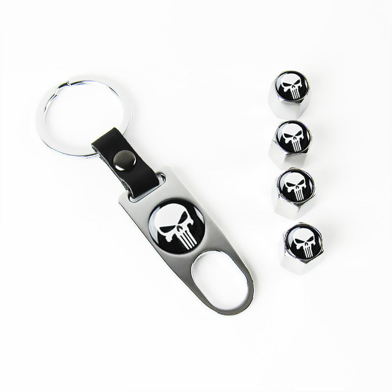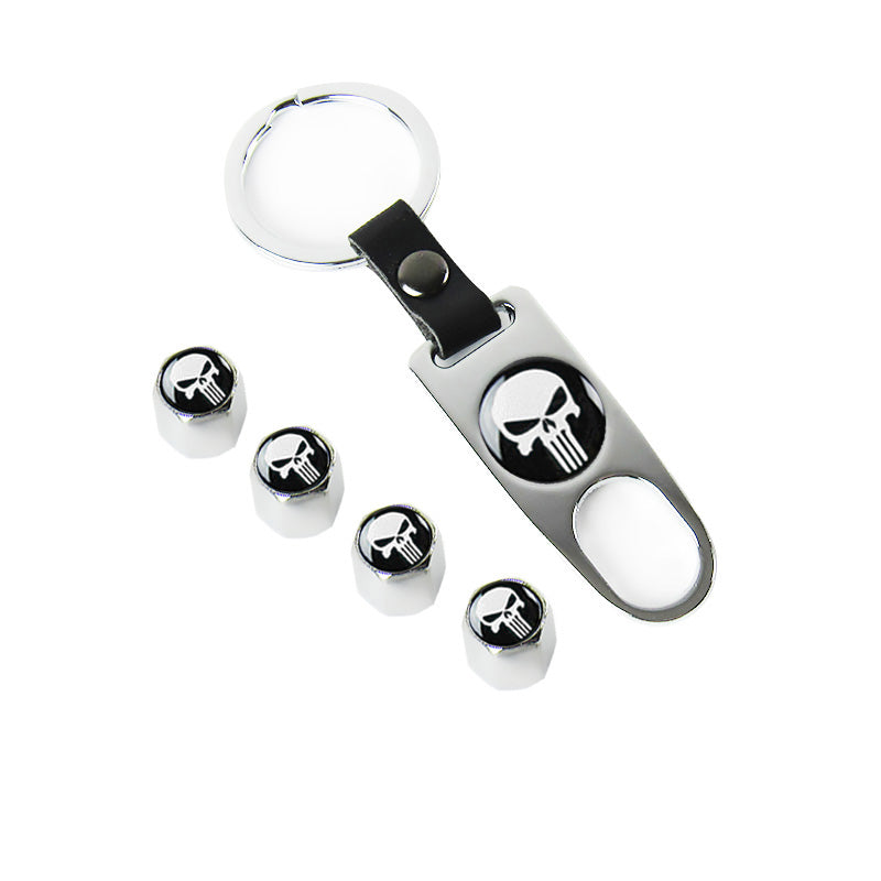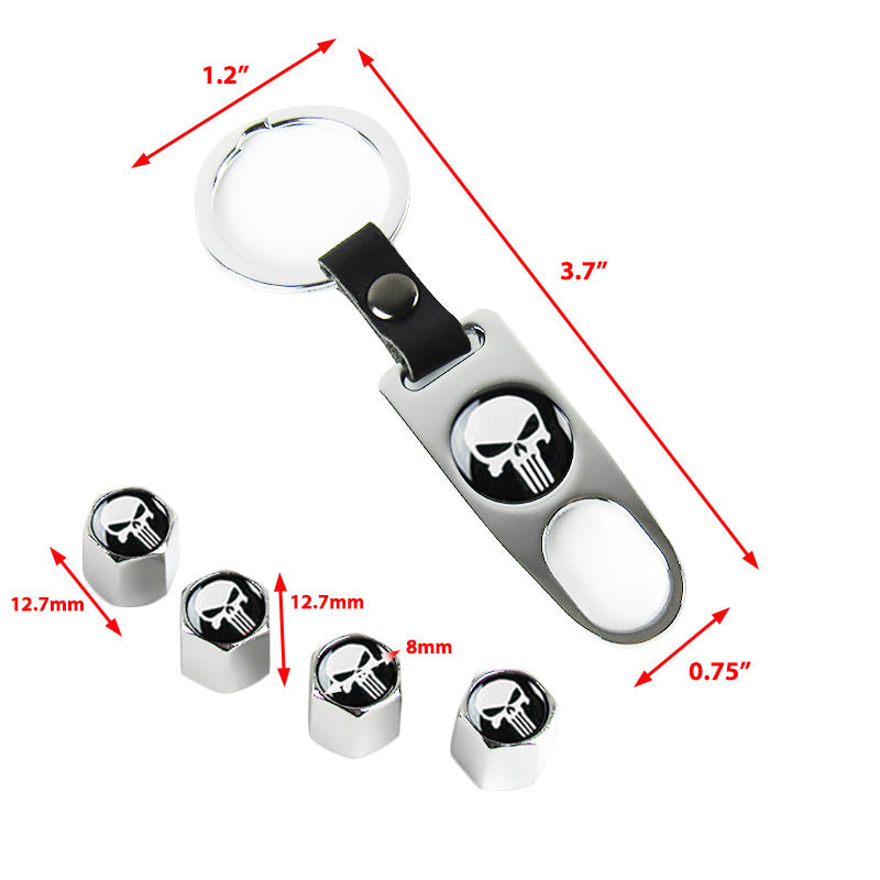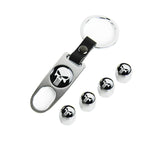 The Punisher Skull Car Wheel Tire Valves Dust Stem Air Caps Keychain Emblem Silver Set