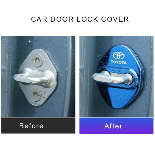 TOYOTA Blue Stainless Steel Door Lock Door Striker Cover Set - 4 pcs