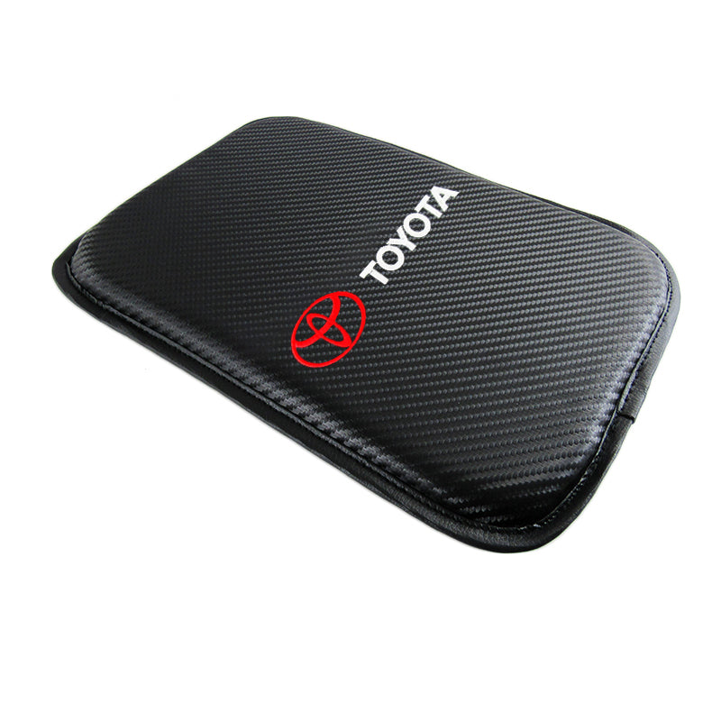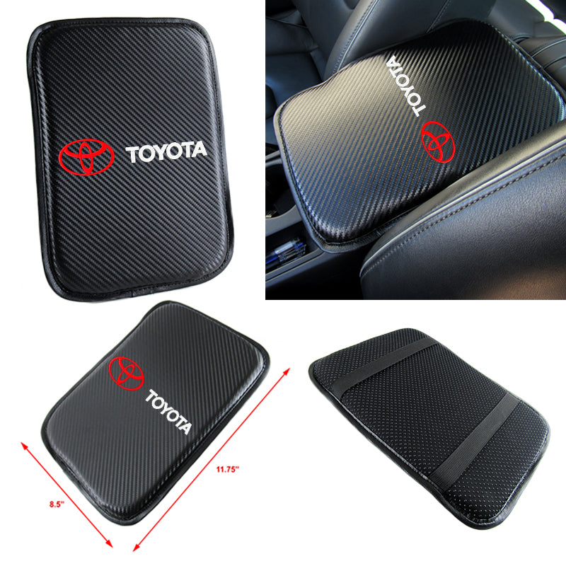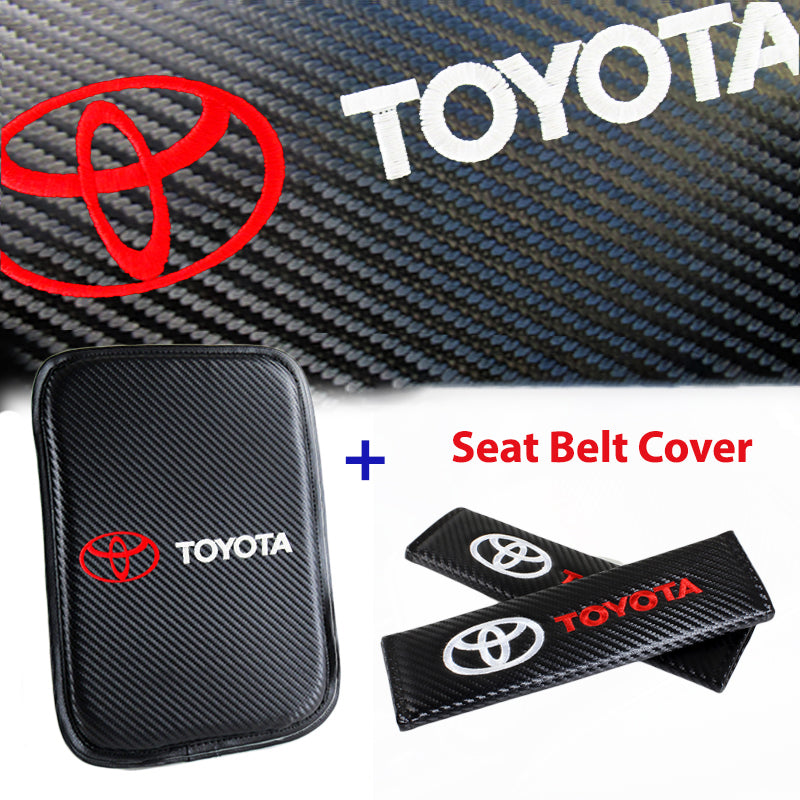 Toyota Embroidered Set of Carbon Fiber Look Armrest Cushion & Seat Belt Cover
