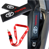 Toyota Set Carbon Fiber Look Embroidery Seat Belt Cover Shoulder Pads X2 with Keychain Lanyard