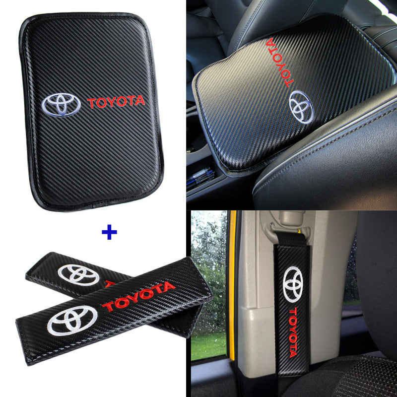 Toyota Set of Carbon Fiber Look Armrest Cushion & Seat Belt Cover