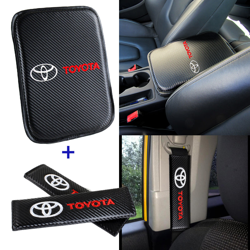 Toyota Set of Carbon Fiber Look Embroidered Armrest Cushion & Seat Belt Cover