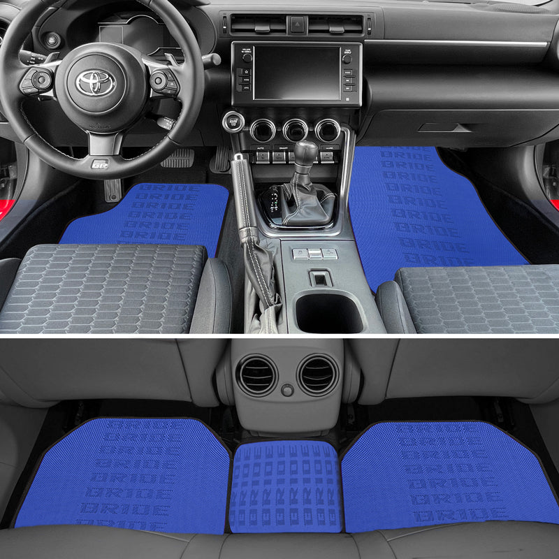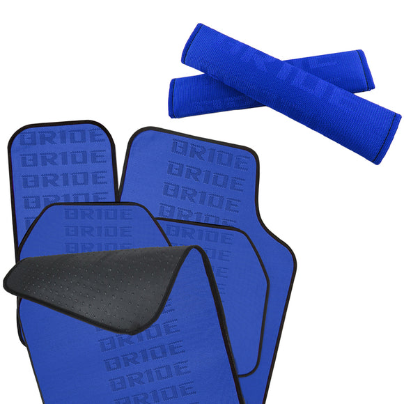 Universal JDM Bride Racing Set of Blue 5PCS Hybrid Fabric Floor Mats with Seat Belt Covers