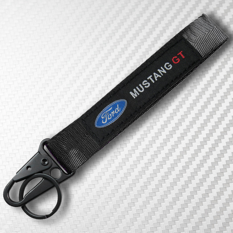 Universal Keychain Metal Key Ring Hook Nylon Strap Lanyard for Ford Mustang GT Brand New