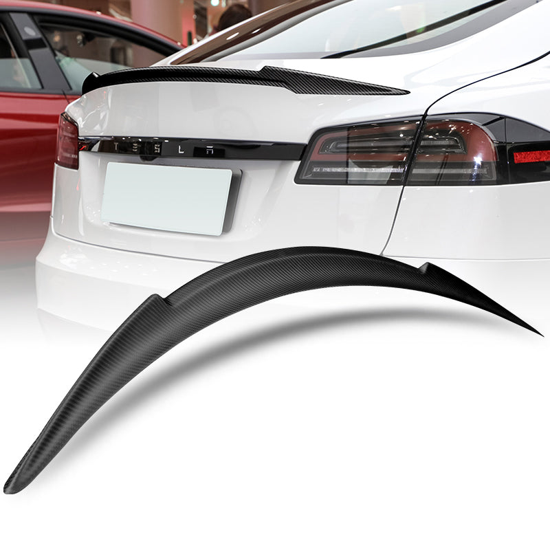 V-Style Rear Trunk Lip Spoiler Wing For 2012-2024 Tesla Model S -Matte Carbon Fiber