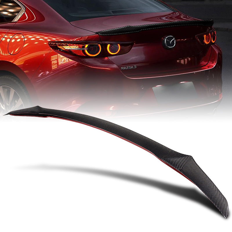 V-Type Rear Trunk Lip Duckbill Spoiler Wing For 2019-2022 Mazda 3 Axela 4-DR / Sedan -Real Carbon Fiber