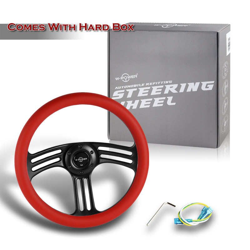 W-Power 14" 350mm 6-Bolt Hole Vintage Style Red Leather Grip With Aluminum Finished 3-Spoke 3 Inches Deep Dish Steering Wheel -Black Center Spoke