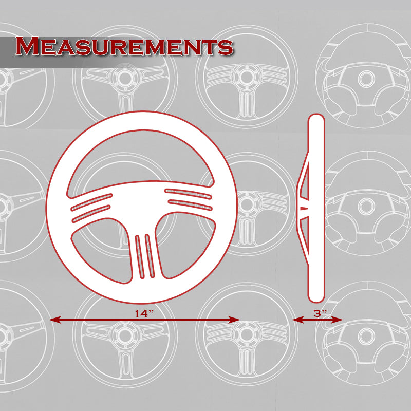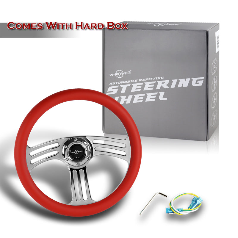 W-Power 14" 350mm 6-Bolt Hole Vintage Style Red Leather Grip With Aluminum Finished 3-Spoke 3 Inches Deep Dish Steering Wheel -Chrome Center Spoke