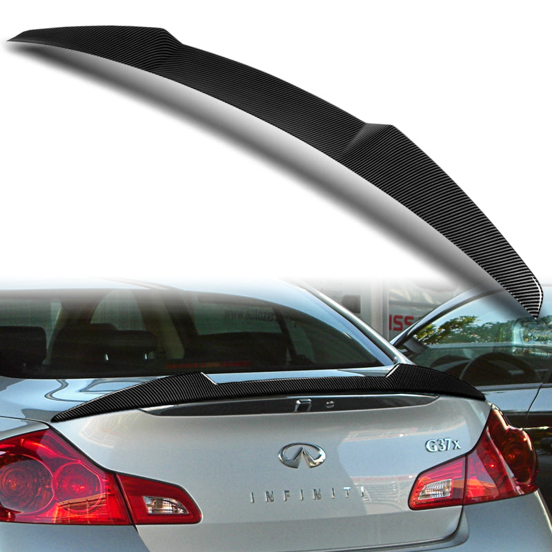 W-Power ABS V-Style Rear Trunk Lip Spoiler Wing For 2007-2015 Infiniti G25 / G35 / G37 Sedan 4DR -Carbon Fiber Look