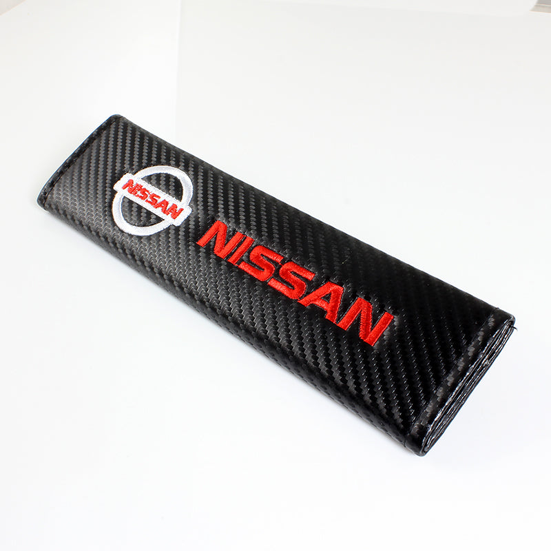 Nissan Black Carbon Fiber Look Seat Belt Cover X2