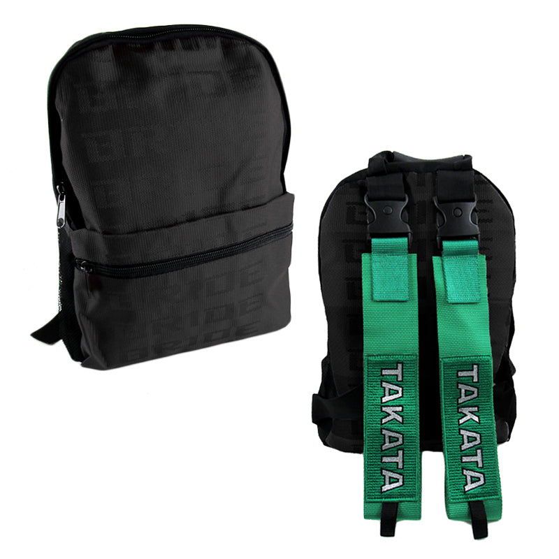 Bride Black Backpack with Takata Green Harness Adjustable Shoulder Straps